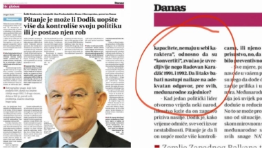 U Đilasovim novinama "Danas" osvanuo je intervju Šefika Džaferovića na dve strane sa naslovom: "Pitanje je može li Dodik uopšte više da kontroliše svoju politiku ili je postao njen rob".