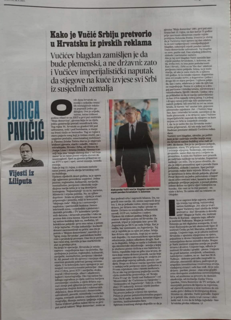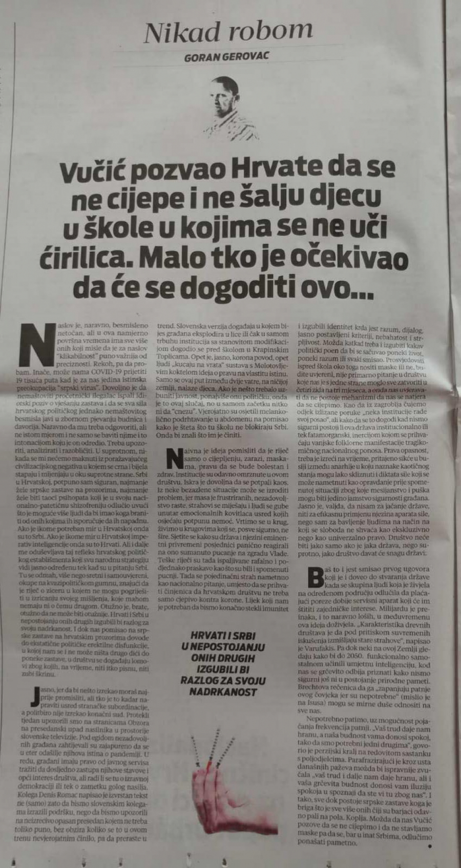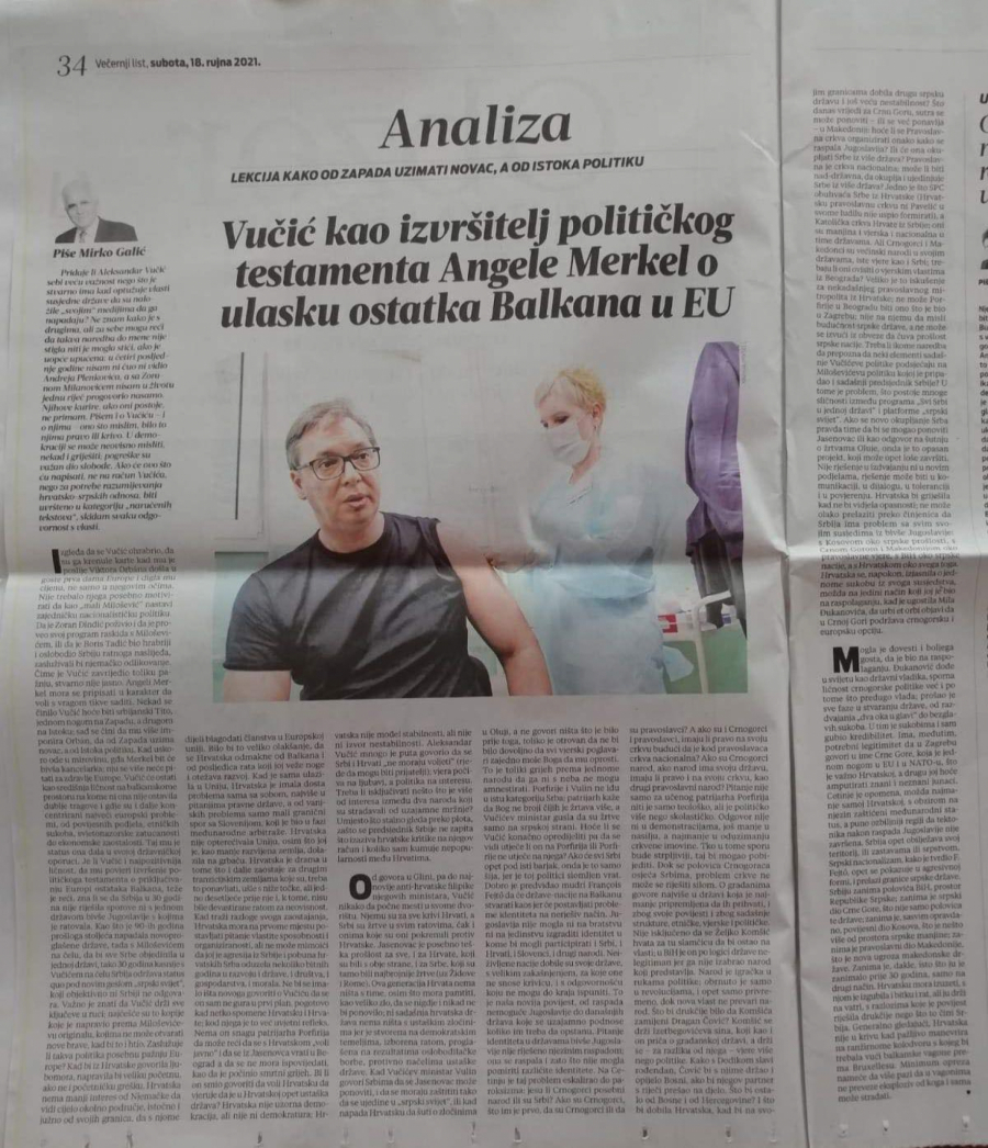 U Jutarnjem je izašao tekst sa naslovom "Kako je Vučić Srbiju pretvorio u Hrvatsku iz pivskih reklama", u Večernjem su izašla čak dva "Vučić pozvao hrvate da se ne cijepe i ne šalju djecu u škole u kojima se ne uči ćirilica. Malo tko je očekivao da će se dogoditi ovo..." i "Vučić kao izvršitelj političkog testamenta Angele Merkel o ulasku ostatka Balkana u Eu".