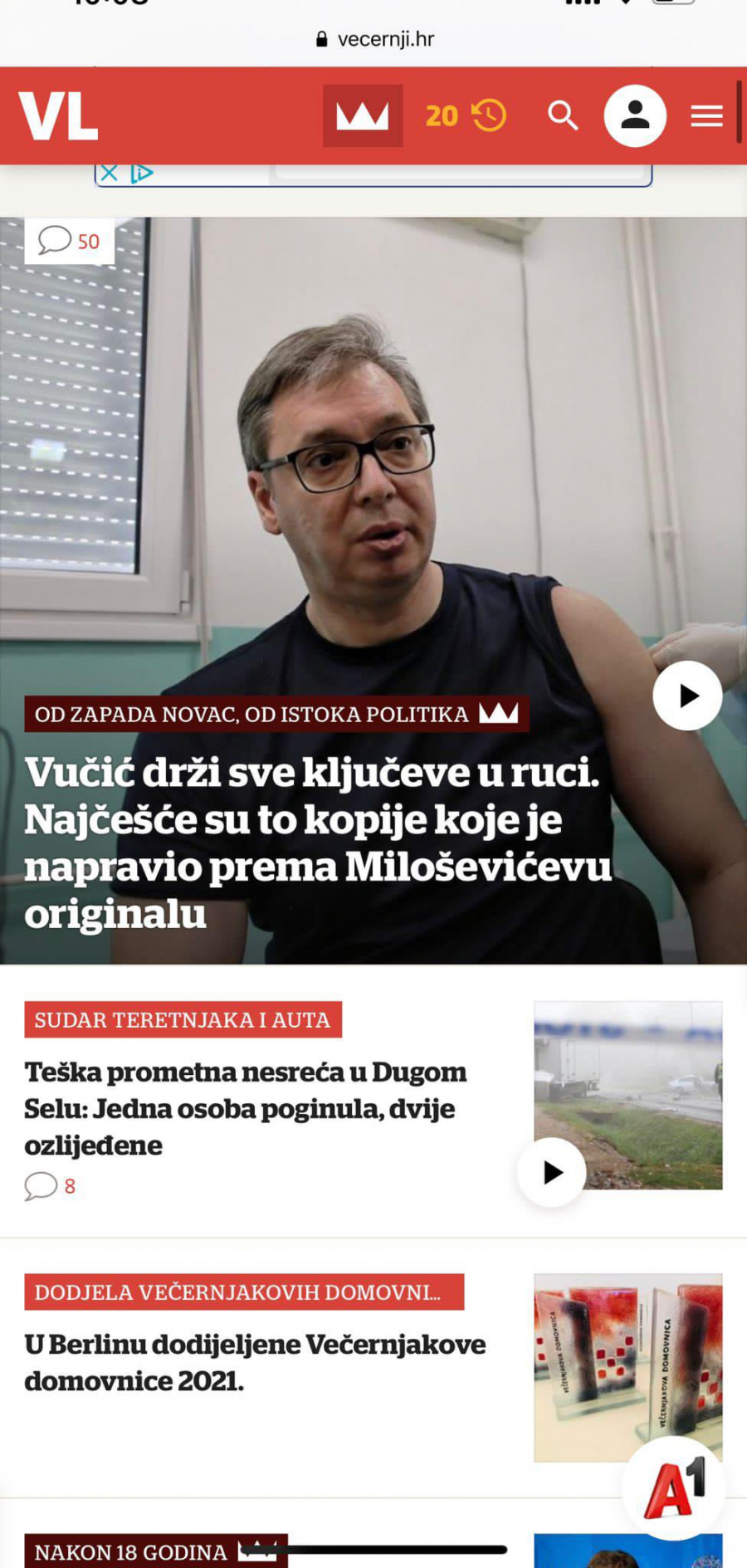 U Hrvatskoj se vodi bolesna kampanja protiv predsednika Srbije i na portalima, na kojima su tekstovi protiv Vučića, glavne vesti.