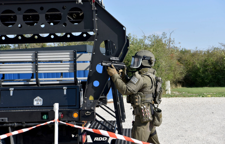 Ministri Vulin i Nehamer na strelištu ove specijalne jedinice u Hohfilcenu prisustvovali su taktičkoj vežbi na kojoj su pripadnici ove jedinice prikazali veštine i sposobnosti u upotrebi eksploziva i specijalnih vozila, kao i obuku pasa.