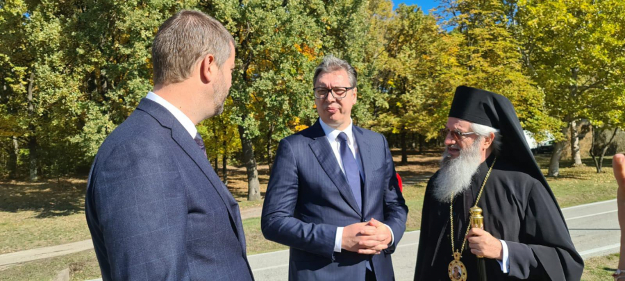 Predsednik Republike Srbije Aleksandar Vučić stigao je na moleban u Šumaricama u Kragujevcu kod spomenika streljanim đacima i profesorima u Drugom svetskom ratu kako bi obeležili godišnjicu stradanja.