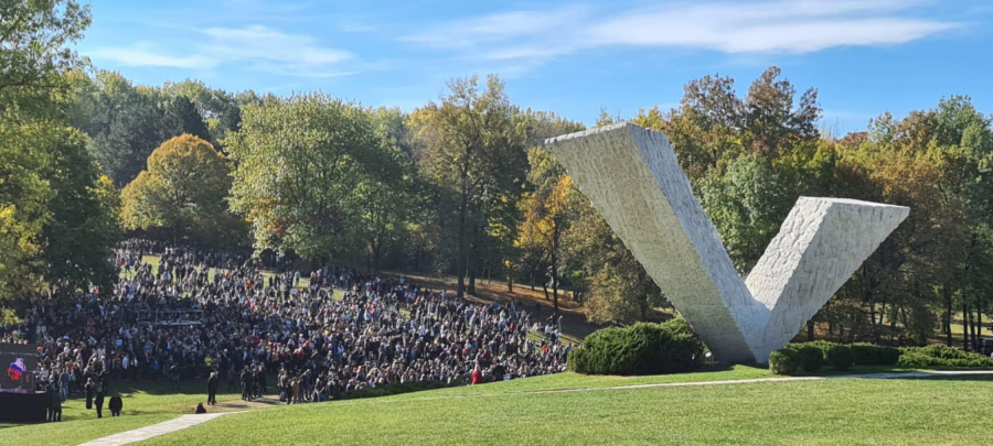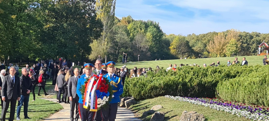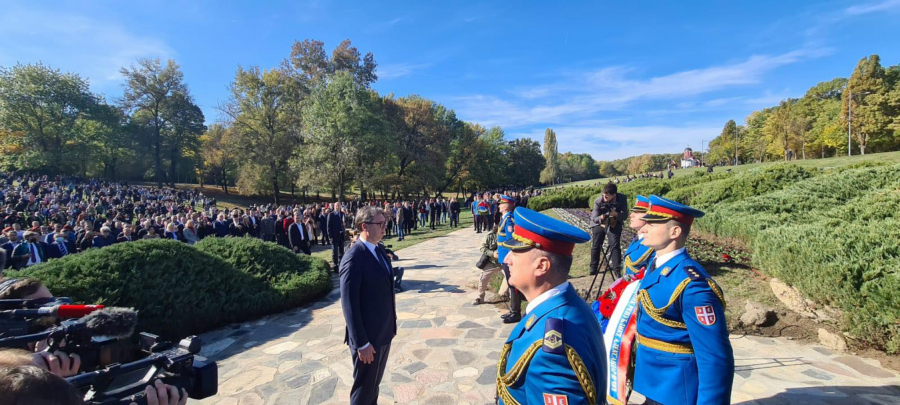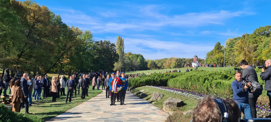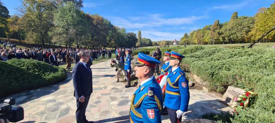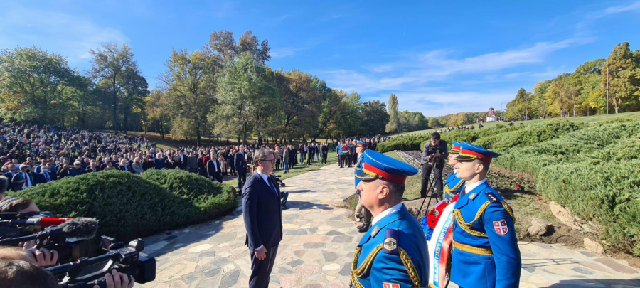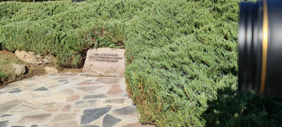 Moleban, pomen stradalima, služio je episkop šumadijski Jovan sa sveštenstvom, a nakon toga predsednik Vučić položio je venac kod spomenika "V3", podignutom na mestu gde su 21. oktobra 1941. godine nemačke okupacione snage streljale đake i profesore kragujevačke gimnazije.