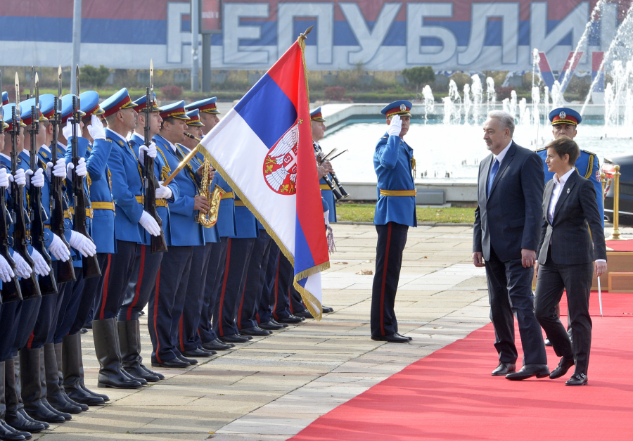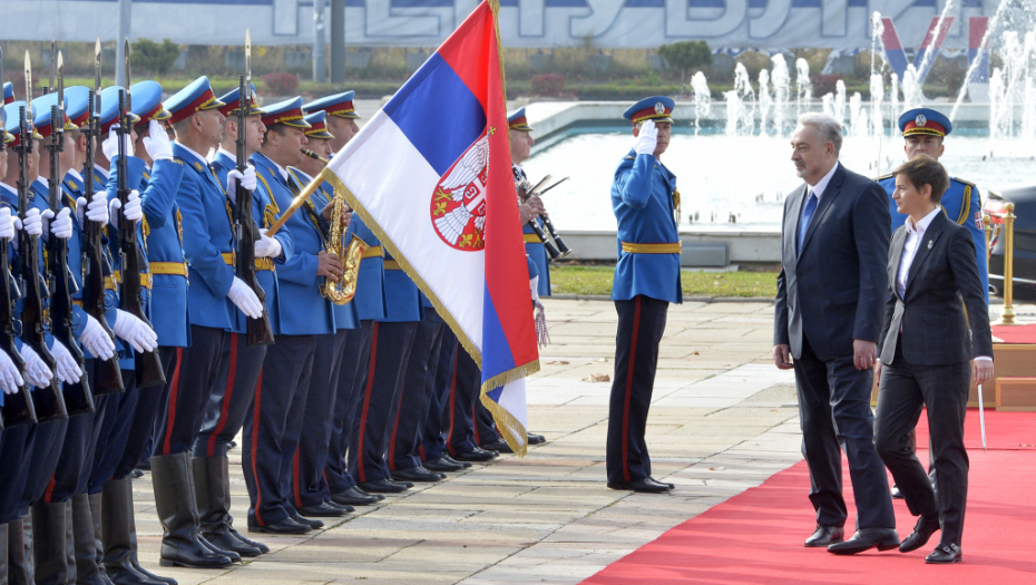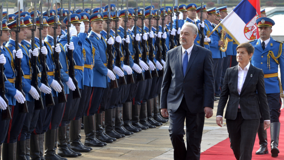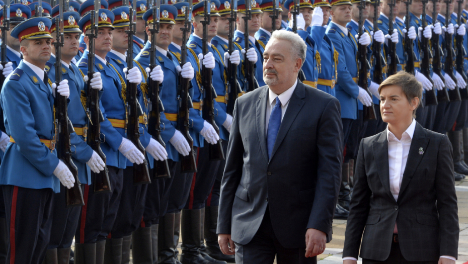 Predsednica Vlade Srbije Ana Brnabić upriličila je danas svečani doček za premijera Crne Gore Zdravka Krivokapića, koji boravi u poseti našoj zemlji. Premijerka je dočekala svog crnogorskog kolegu ispred Palate Srbija, uz počasnu Gardu Vojske Srbije i intoniranje himni dve zemlje.
