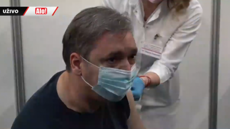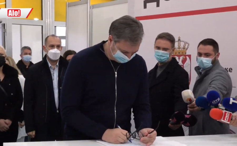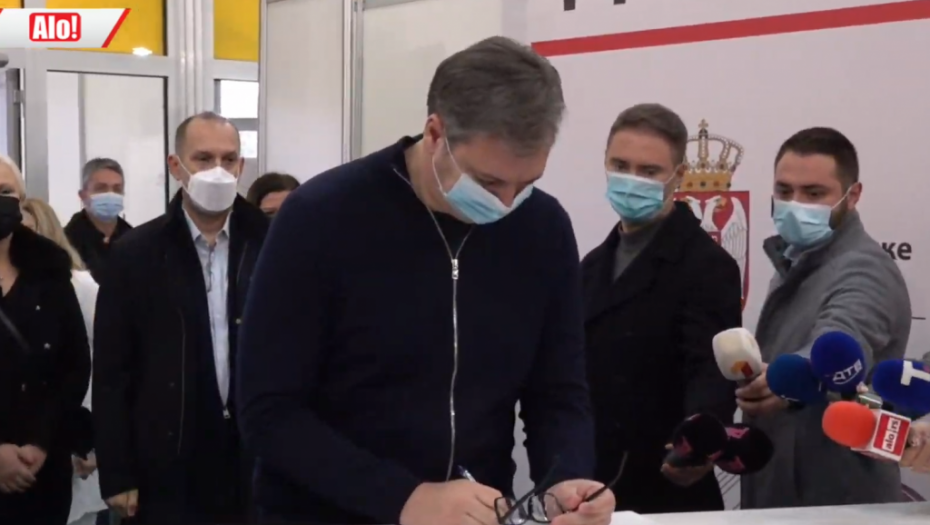Vučić treću dozu vakcine prima na vakcinalnom punktu u Hali 7, Beogradskog sajma. Predsednik je i za buster dozu odabrao da primi vakcinu "Sinofarm".