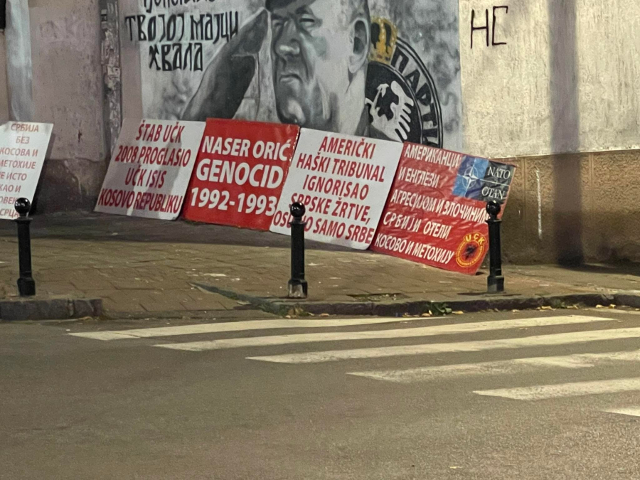 Kordon policije okružio je dve frakcije, one koji brane mural generala Mladića i one koji bi da ga unište.