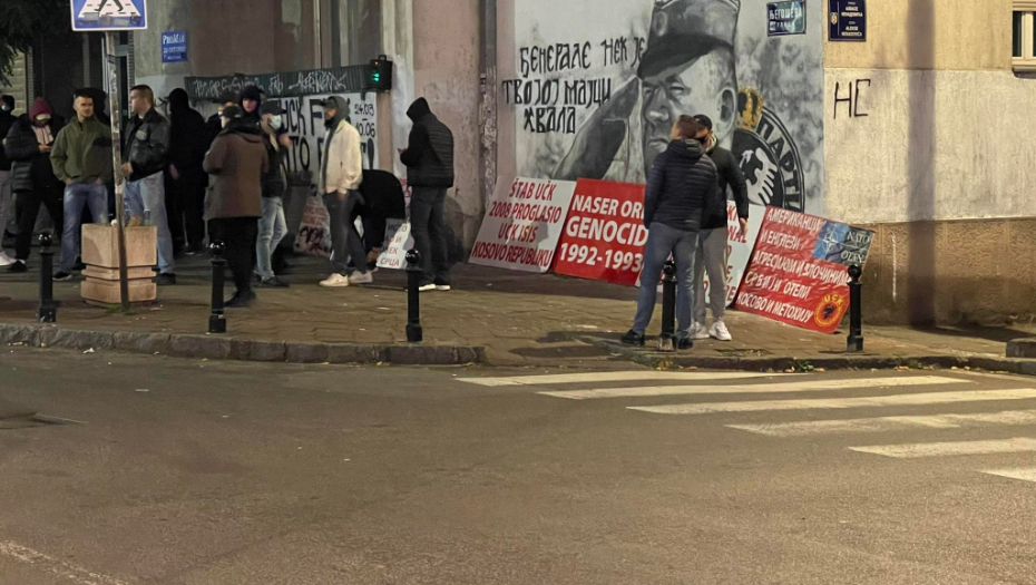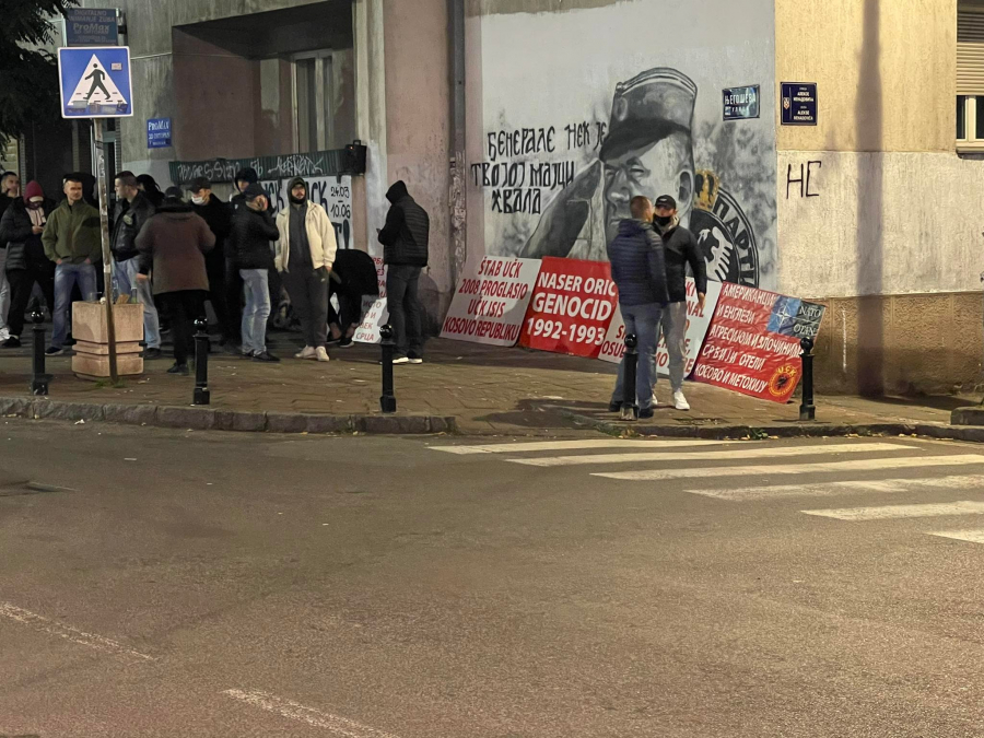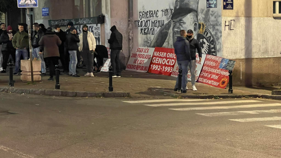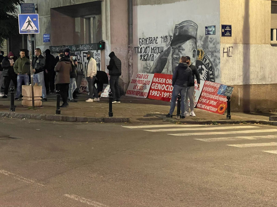 Okupljeni skandiraju : Ratko Mladić!Njegoševa ulica je zatvorena od ugla sa Beogradskom do ugla sa Molerovom.