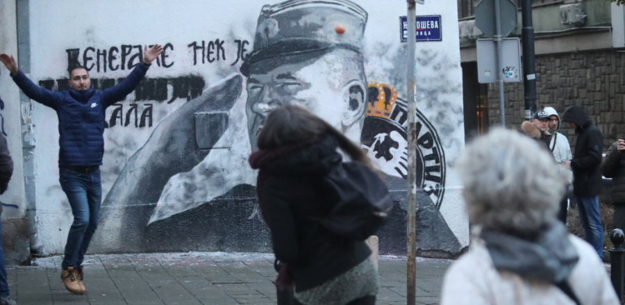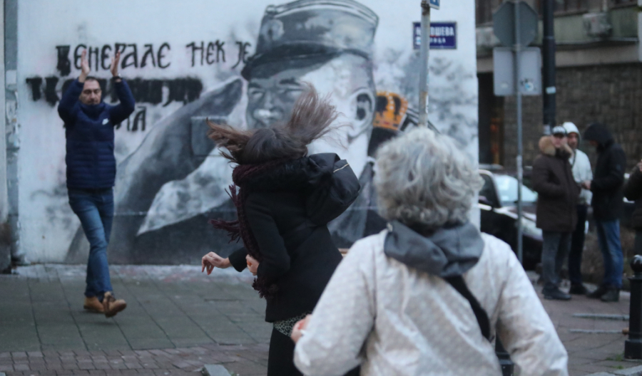 Prvo je Marinika Tepić na Tviteru dan posle scene koju je napravila Aida Ćorović gađajući jajima mural generala Ratka Mladića poručila da je potrebno "čuvati snagu", aludirajući na to da se radi o predstavi.