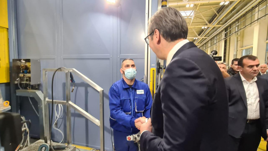 - Razgovarao sam sa radnicima, velika je mobilnost ljudi kada mogu da dobiju dobar posao, ovde će raditi više od 500 ljudi. Ti radnici su naš ponos, to je primer investitorima da dođu da ulažu u Srbiju. Važno je da nastavimo da na ovakav način privlačimo investitore - počeo je predsednik svoje obraćanje.