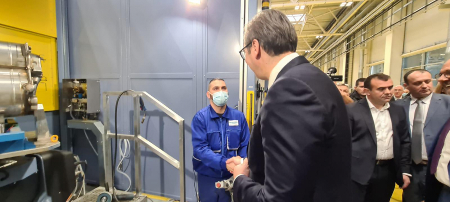 Predsednik Srbije prošao je kroz celu fabriku i pozdravio sve prisutne radnike. Vučić je tom prilikom istakao da uopšte nije lako raditi u ovoj fabrici, da je neophodno mnogo znanja, marljivog truda, rada i koncetracije, ali da je preponosan na to da Srbija ima da ponudi takve radnike.