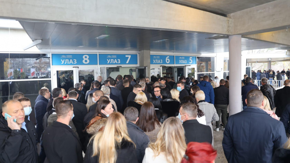Članovi stranke dočekali su predsednika Vučića aplauzom kada je ulazio u halu.