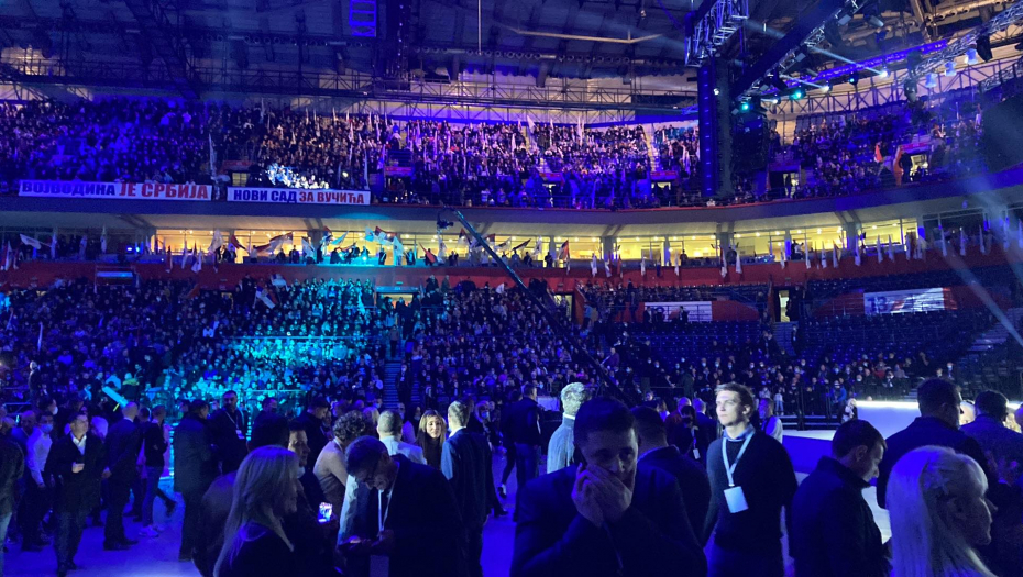 Hiljade članova i simpatizera SNS su već stigli pred Štark Arenu, iako do početka svečanosti ima još sat i po vremena.