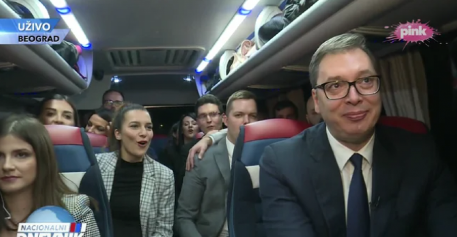 "IMAMO RAZLOGA DA BUDEMO VESELI" Predsednik Vučić u autobusu sa omladinom SNS: Pristojna Srbija pobeđuje