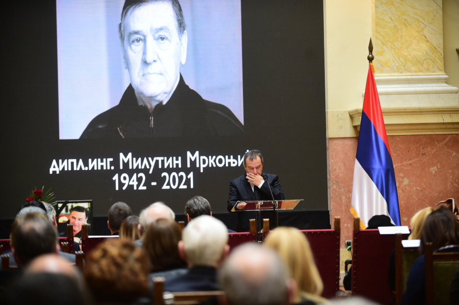 Političar Milutin Mrkonjić preminuo je u 79. godini, u subotu 27. novembra. Komemoracija u njegovu čast organizovana je danas u Skupštini Srbije, a sahrana će biti na Novom groblju u Beogradu u Aleji zaslužnih građana. Ivica Dačić, koji je održao govor na komemoraciji rekao je kako će Mrka biti sahranjen uz pesmu Bekija Bekića "Čubura".