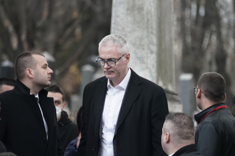 Ivica Dačić je sa suzama u očima prišao kovčegu i položio na isti crvenu ružu.