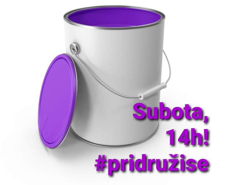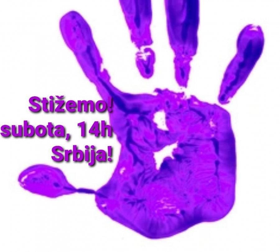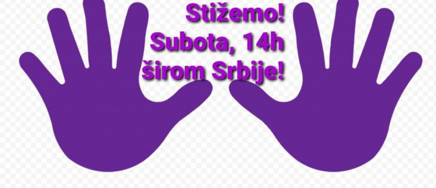 "U trenutku kada se na svim kontinentima, u većini država sveta, brojnim aktivnostima obeležava 30 godina globalne kampanja „16 dana aktivizma protiv nasilja nad ženama“, u Srbiji se posrestvom medija građanstvo poziva da bacanjem kanti ljubičaste boje zaustavi blokadu saobraćaja najavljenu u okviru subotnjeg protesta građana nezadovoljnih stanjem u zemlji po različitim pitanjima. Podsećamo da je ljubičasta boja simbol feminističkog pokreta i da je istorijski povezana sa naporima i delovanjem pokreta za oslobođenje žena i zalaganja za ženska prava, navodi AŽC."