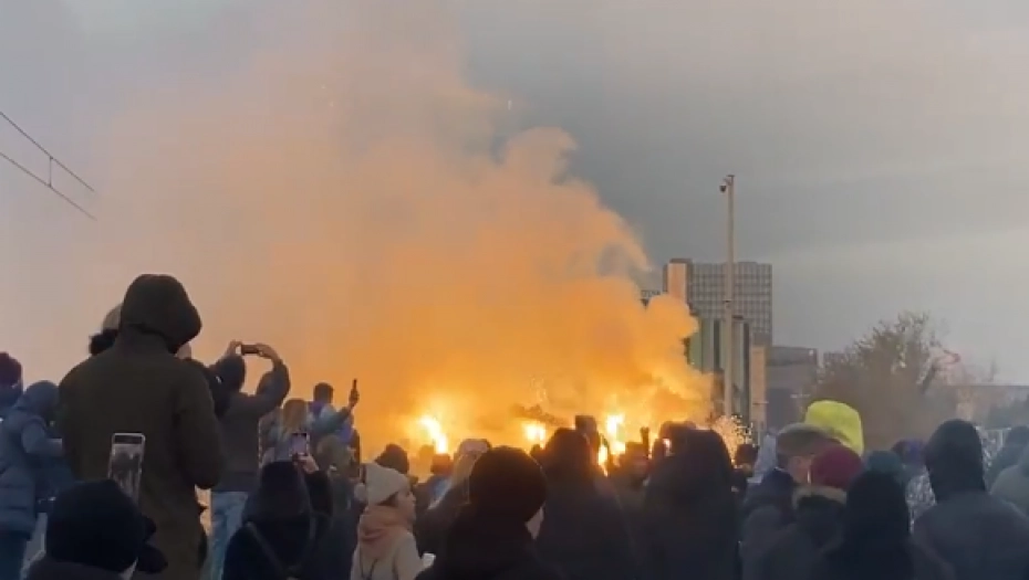 LUDILO NA PROTESTIMA NA VRHUNCU Huligani bacaju baklje, Gazela se ne vidi od dima (VIDEO)