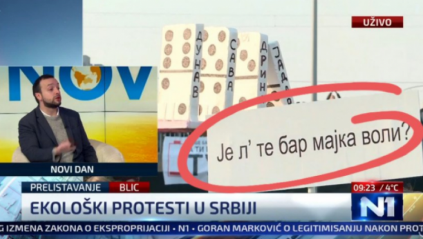 N1 objavio snimak sa jučerašnjih nezakonitih blokada gde se vidi transparent kojim se UDARA NAJNIŽE - NA PORODICU! Imajući u vidu da su protesti EKOLOŠKI, ne znam kakve veze ima Vučićeva majka sa ekologijom?