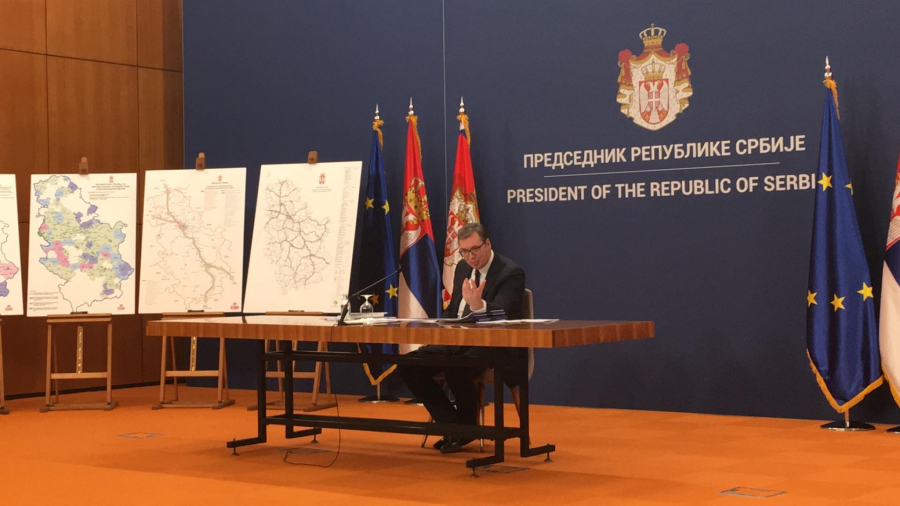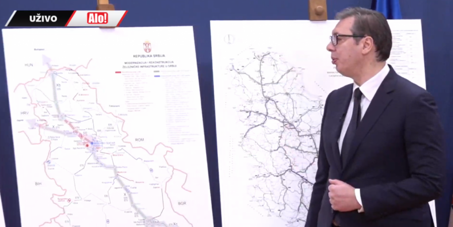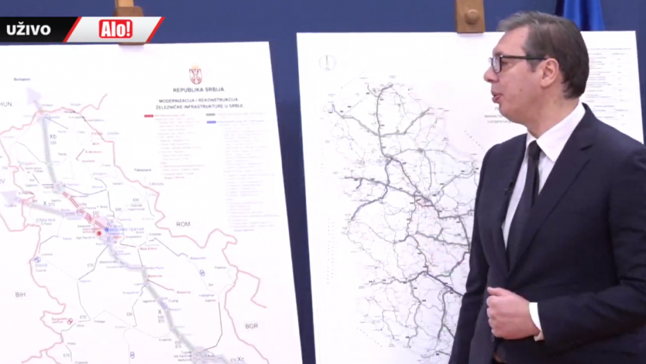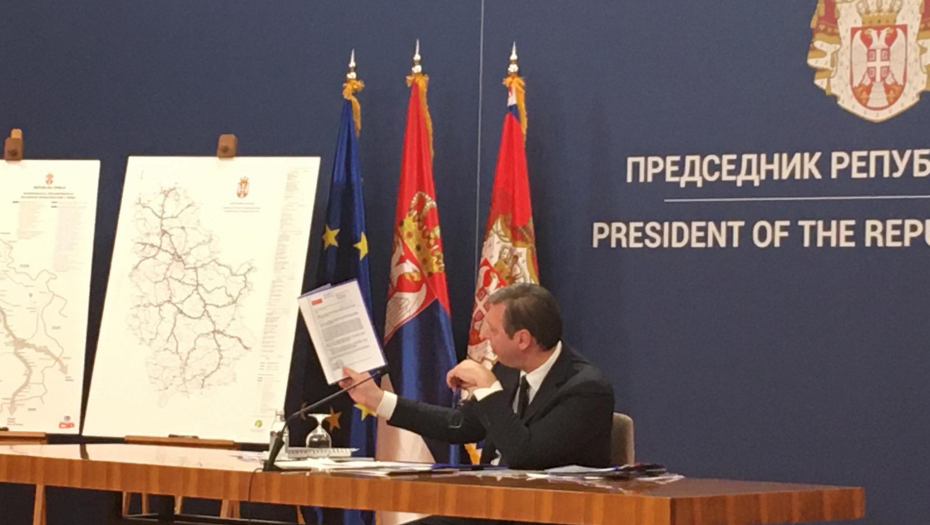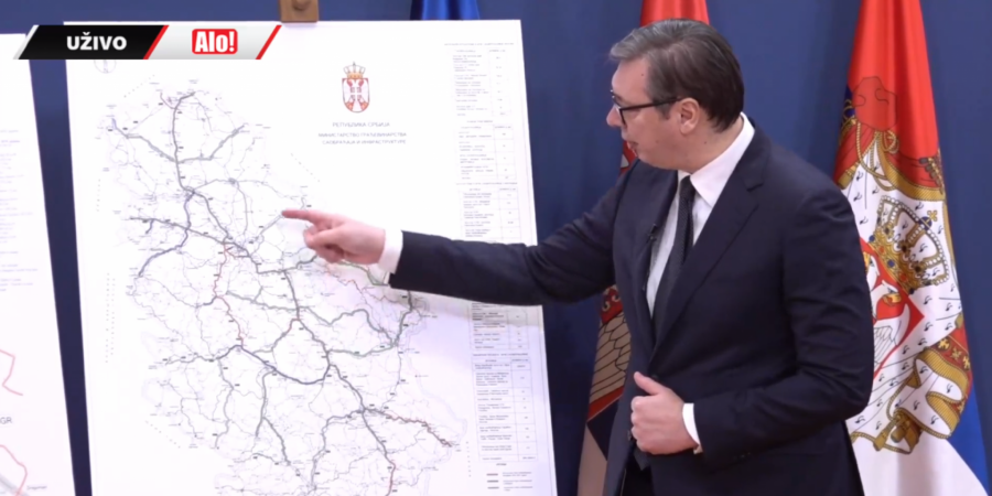 Vučić je pokazao celu mapu, mrežu autoputeva koji su izgrađeni, kao i železničku infrastrukturu.