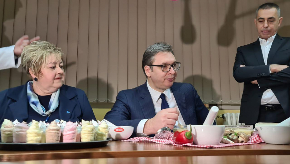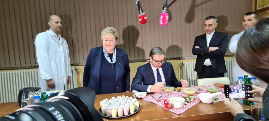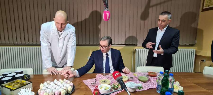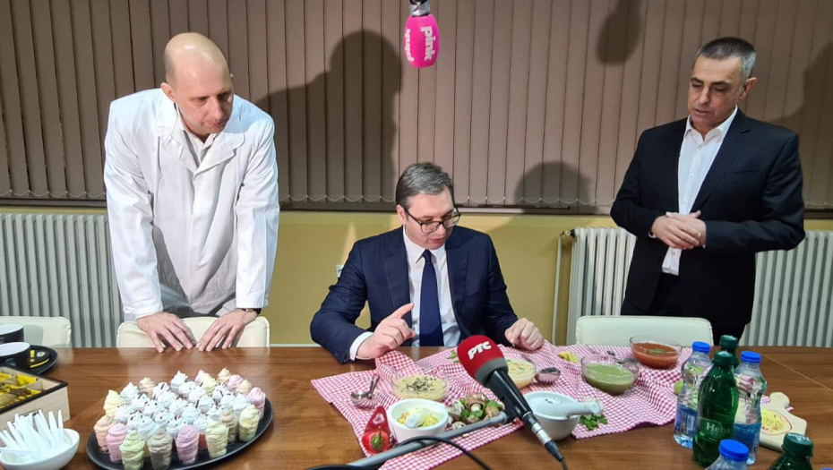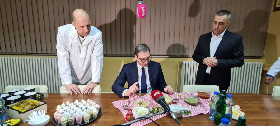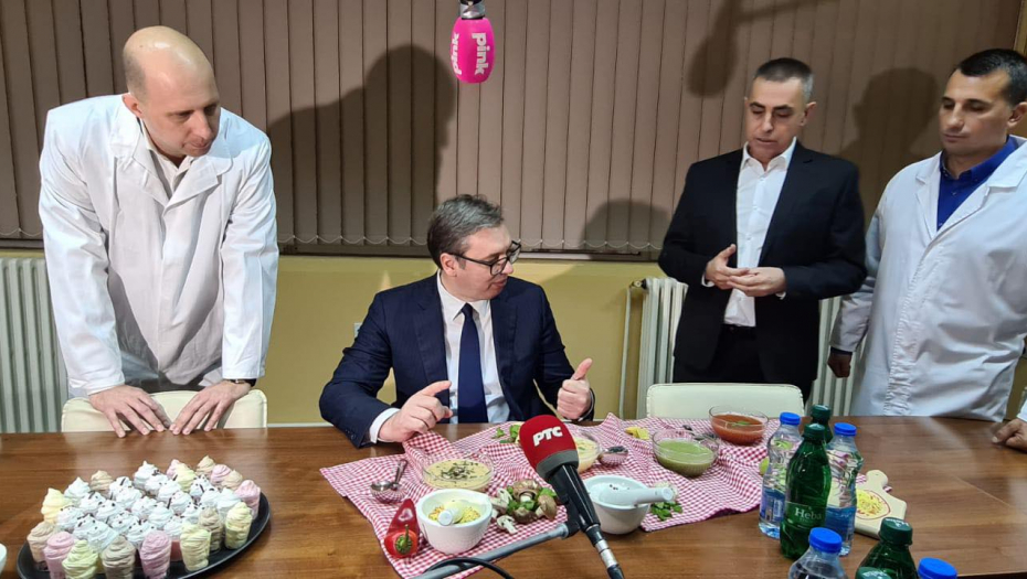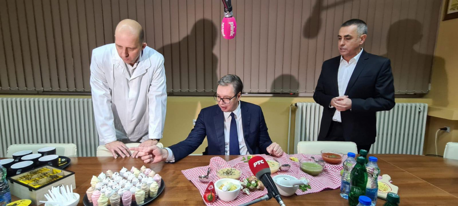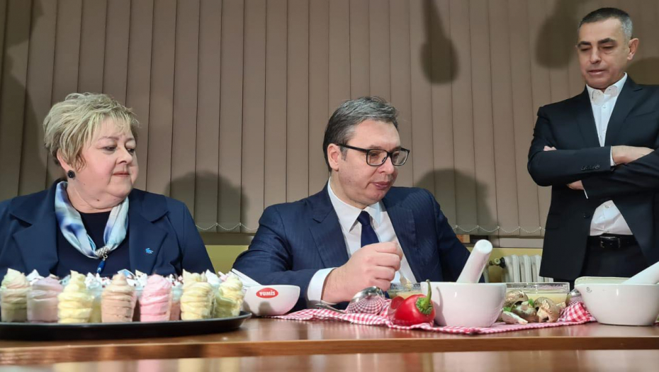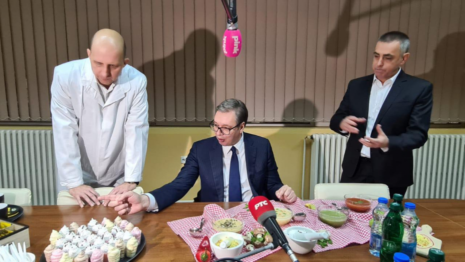 Predsednik Srbije Aleksandar Vučić je obišao fabriku Yumis u Nišu, a domaćini su ga, po starom srpskom običaju, ponudili bogatom trpezom.