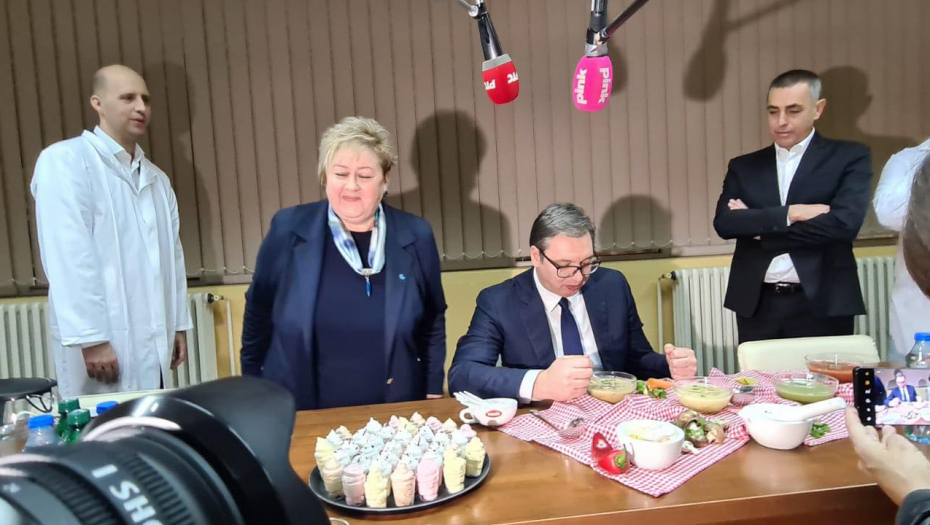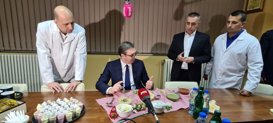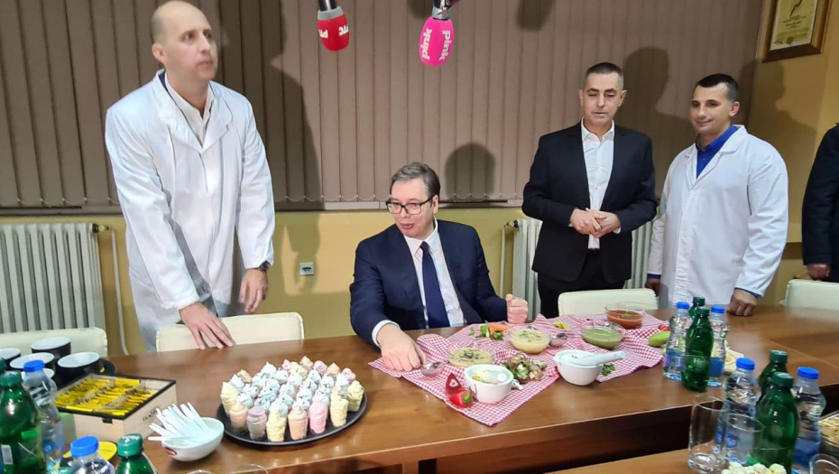 DOMAĆIN SE DOMAĆINSKI POKAZAO Predsednik Vučić večerao u fabrici Yumis (FOTO GALERIJA)