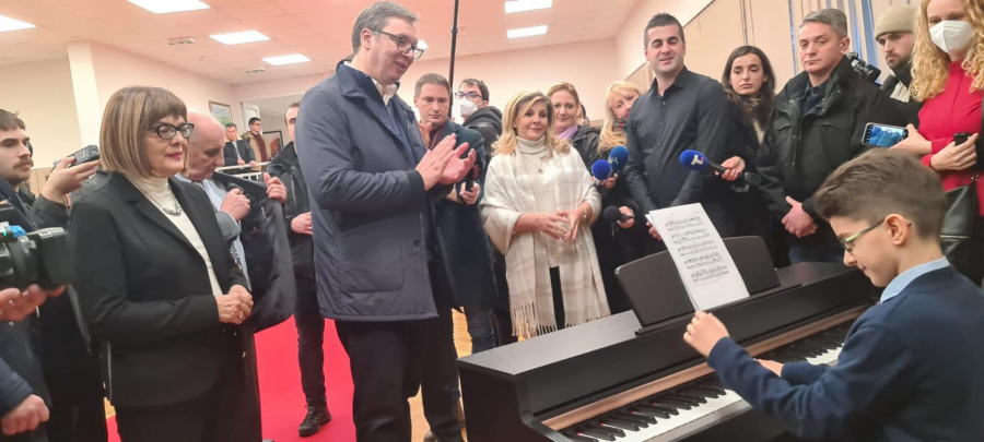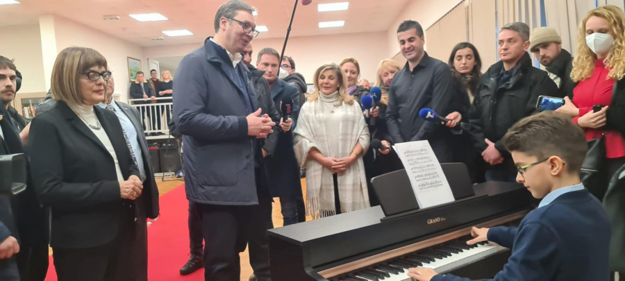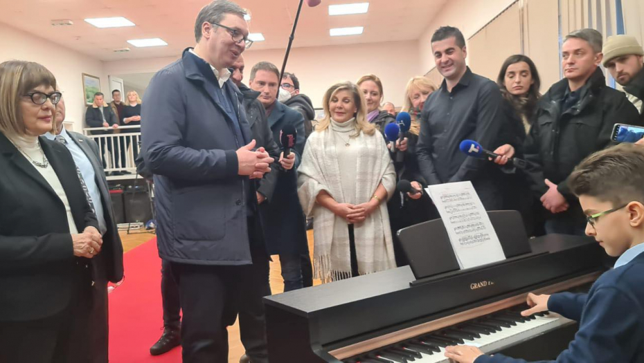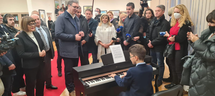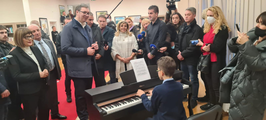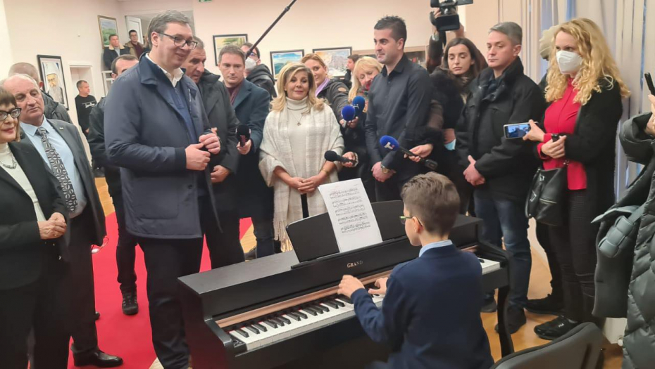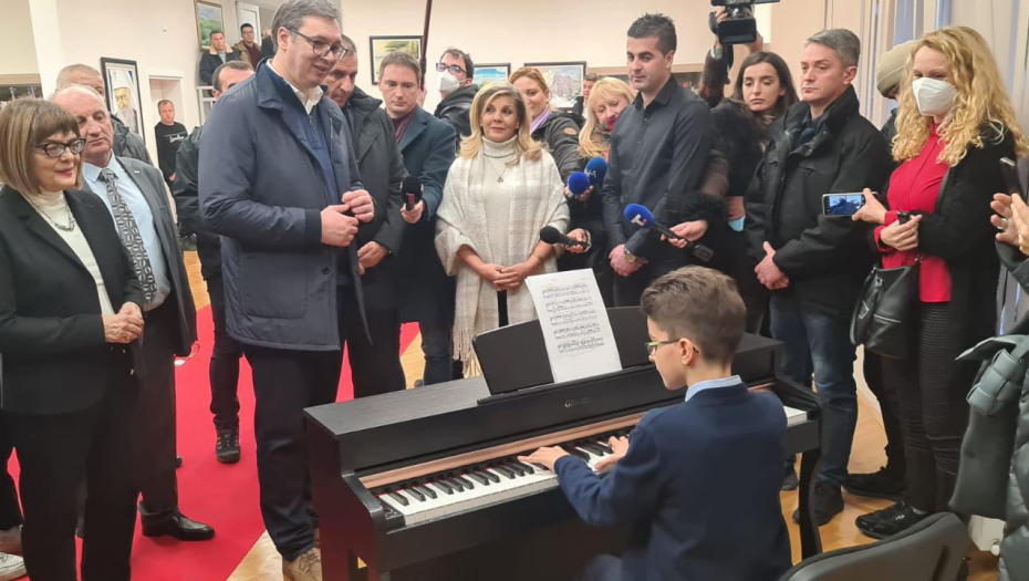 U jednom trenutku je dečak zasvirao klavir, a predsednik Vučić uživao u zvucima prelepe melodije.