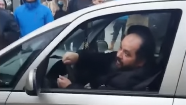 Sveštenik je juče pokušao da prođe automobilom, u kom su mu bila deca, kroz okupljene građane, a kada mu to, ipak, nije dozvoljeno.