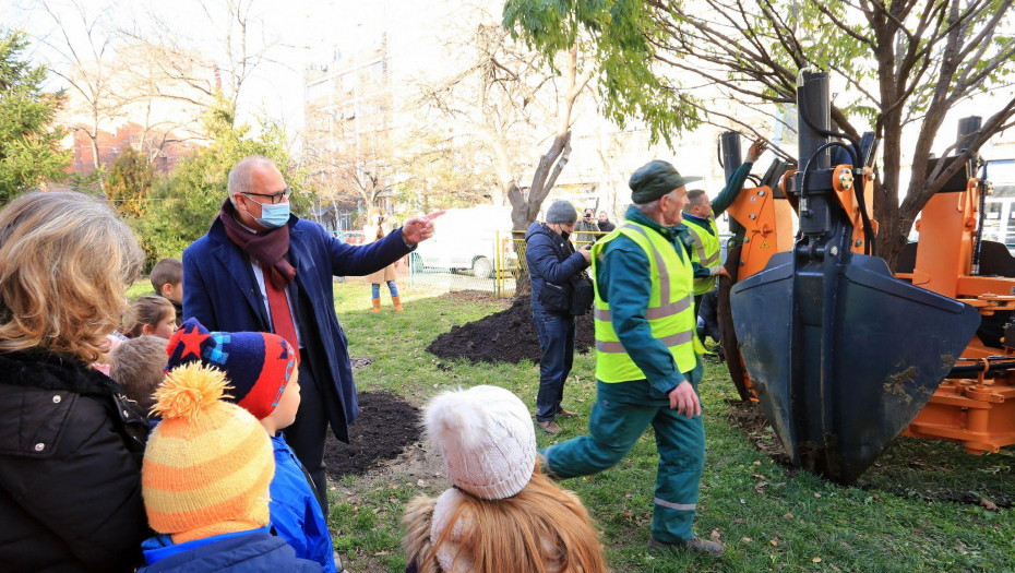 "Deca iz ovog vrtića su želela da imaju svoje drvo bagrema koje će paziti i zalivati, a kada prođu novogodišnji praznici mališani će jelke koje su dobili, saditi u dvorištima svojih vrtića i tako učiti o tome kako se čuva životna sredina", dodao je Vesić.