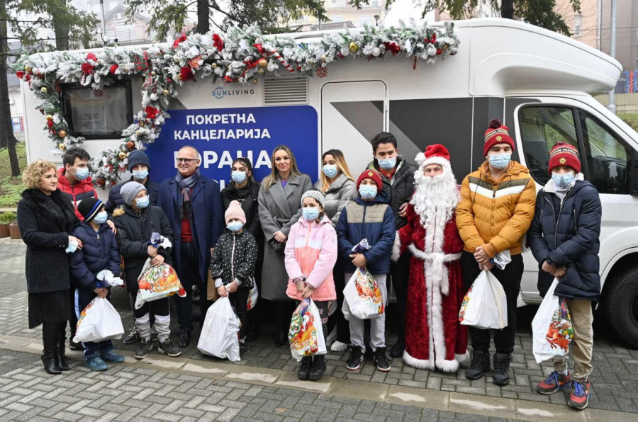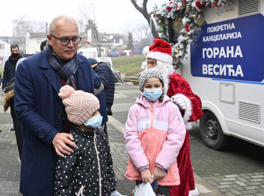 "Pokretna kancelarija Gorana Vesića" ove nedelje uručuje novogodišnje paketiće deci iz socijalnih ustanova, rekao je Vesić i dodao da je cilj ove akcije da svako dete na teritoriji Beograda dobije svoj paketić.