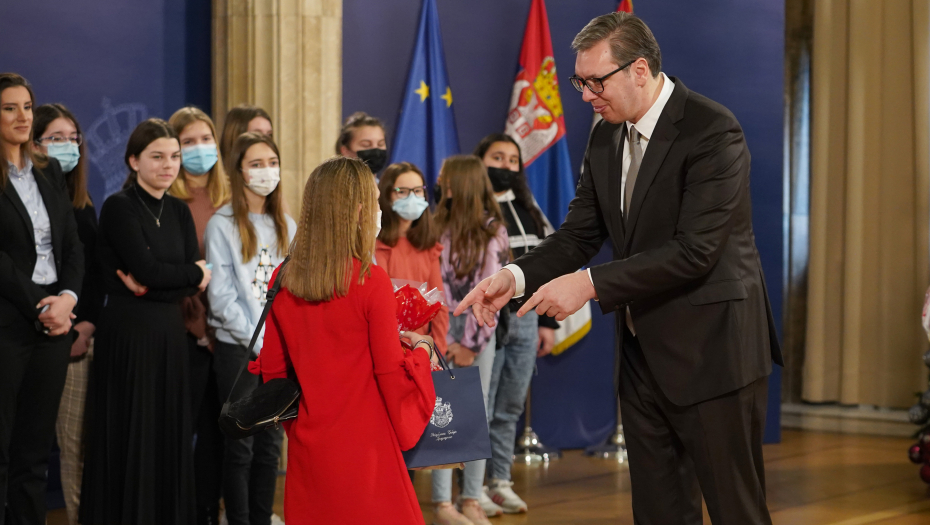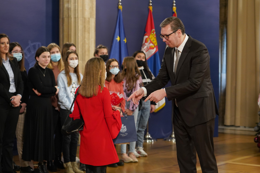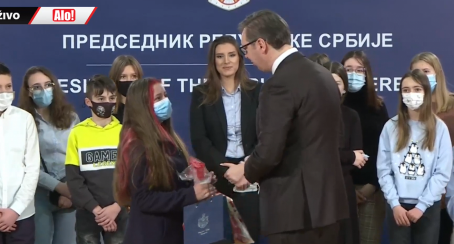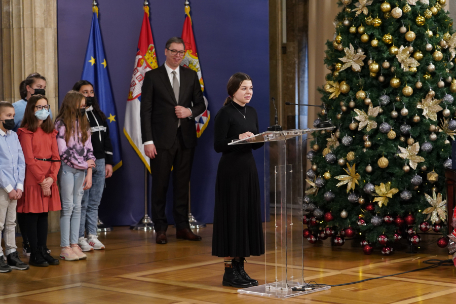 Zatim se prisutnima obratila devojčica Nevena koja je u ime svih zahvalila na gostoprimstvu i izdvojenom vremenu. Vučiću je poručila i da im je drago što je danas tu prisutan.