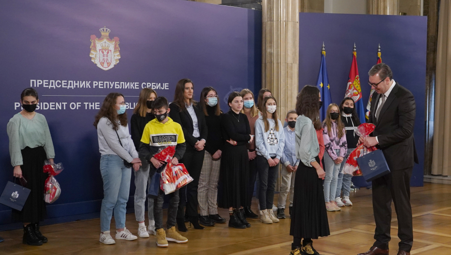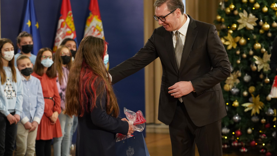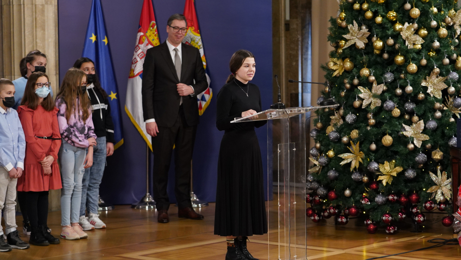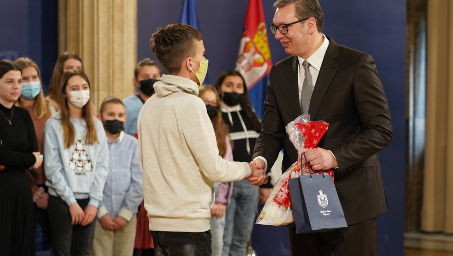 PROSLAVA BADNJEG DANA U PREDSEDNIŠTVU Vučić sa srpskom decom iz Hrvatske: Budite uvek ponosni na svoje ime i prezime (FOTO/VIDEO)