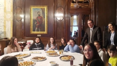 Predsednik Republike Srbije Aleksandar Vučić ugostio je na Badnji dan decu srpske nacionalnosti iz Republike Hrvatske, koja borave u poseti Beogradu povodom Božićnih praznika.