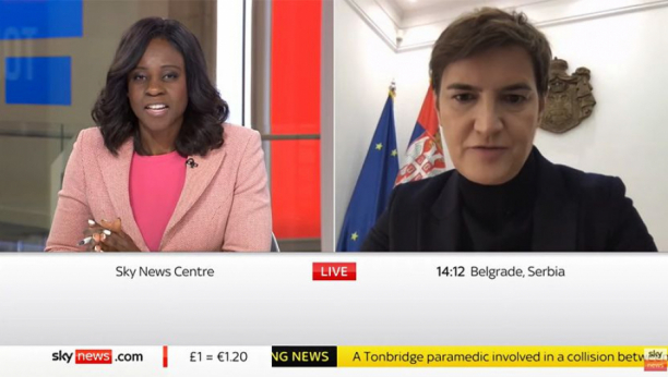 Premijerka Srbije Ana Brnabić uključila se uživo u program Skaj Njuza (Sky News) povodom slučaja zadržavanja na aerodromu u Australiji srpskog tenisera Novaka Đokovića. Kako su najavili u programu uživo, dok je Novak Đoković, broj jedan teniser sveta u očekivanju deportacije, premijerka traži da se teniser pusti iz hotela za deportaciju, u kuću koju je iznajmio i da je Vlada Srbije dala garancije Vladi Australije da će da poštuje sve što je neophodno.