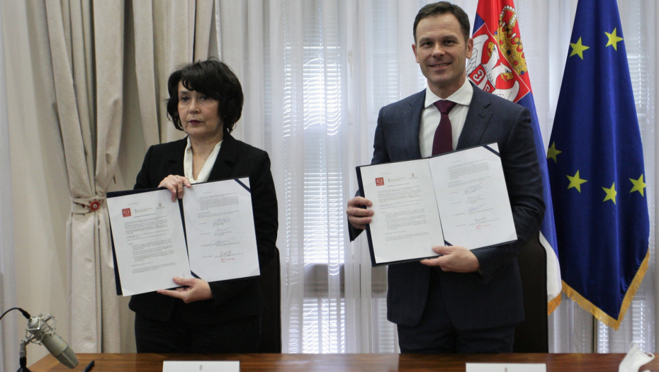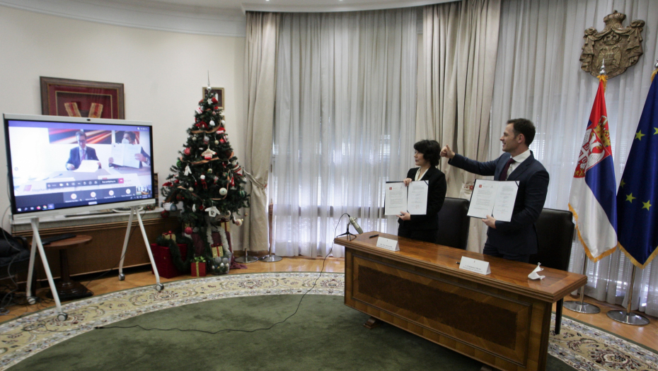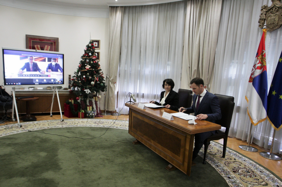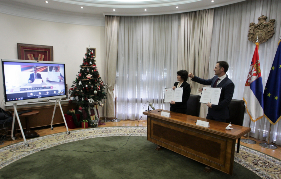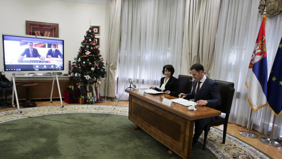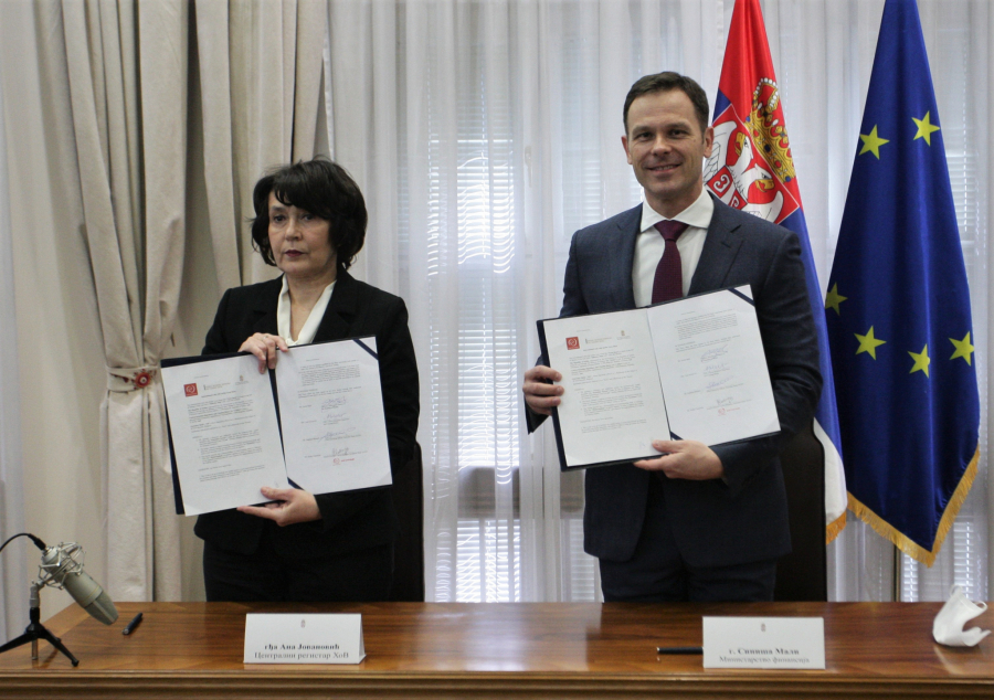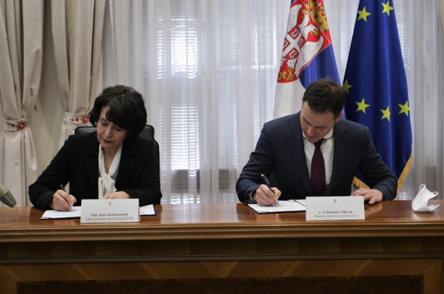 Ministar finansija u Vladi Republike Srbije Siniša Mali, direktorka Centralnog registra hartija od vrednosti Ana Jovanović, direktor globalnog tržišta kapitala Euroclear-a Sudip Čaterdži i direktor operativnih poslova Euroclear-a Stefan Bernard potpisali su danas dokument kojim se definišu uslovi saradnje, u cilju uključivanja državnih hartija od vrednosti Republike Srbije u sistem Euroclear-a.