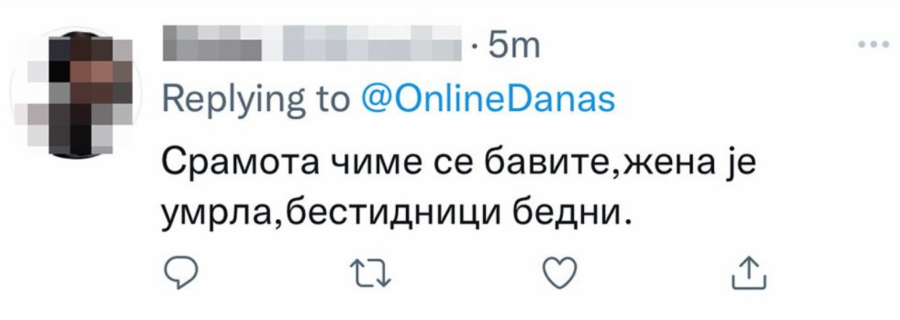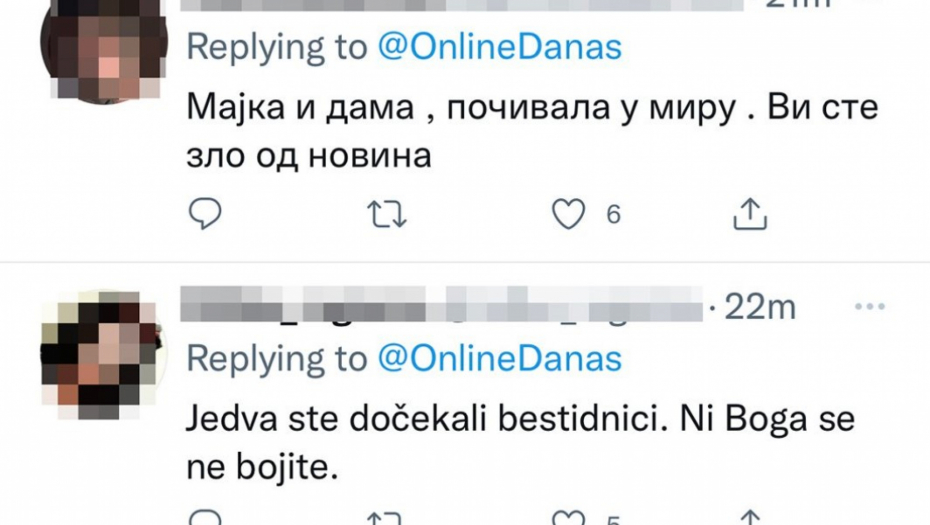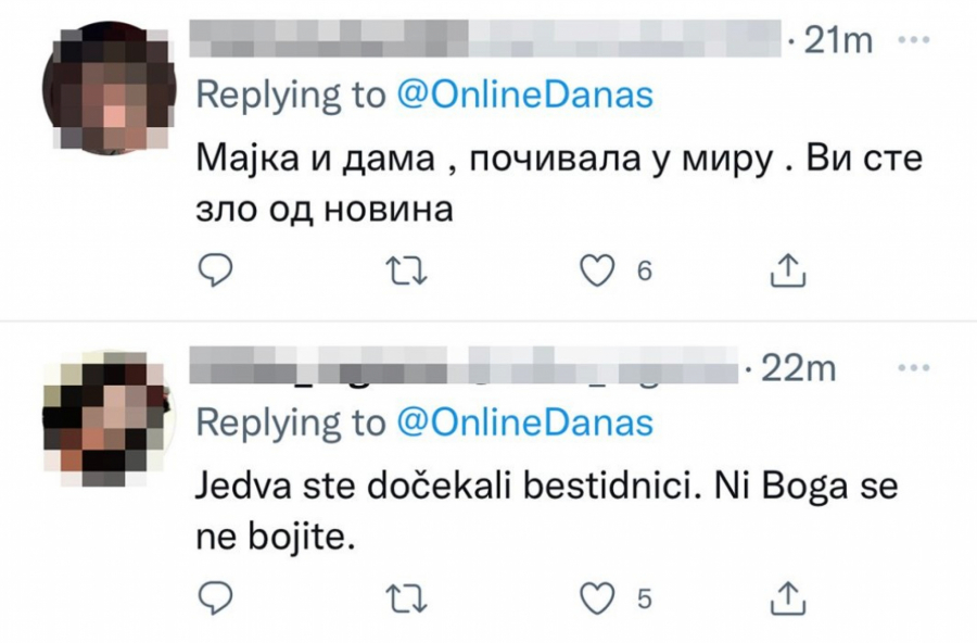 Nismo ni očekivali od Đilasovaca da pokažu bar trunku ljudskosti i solidarnosti,nismo jer oni to ne poseduju. Njihova mržnja je bolesna,vređaju mrtvu ženu. Ovo je pokazatelj o kakvim ljudima se radi,mogu bar mrtve da poštuju.