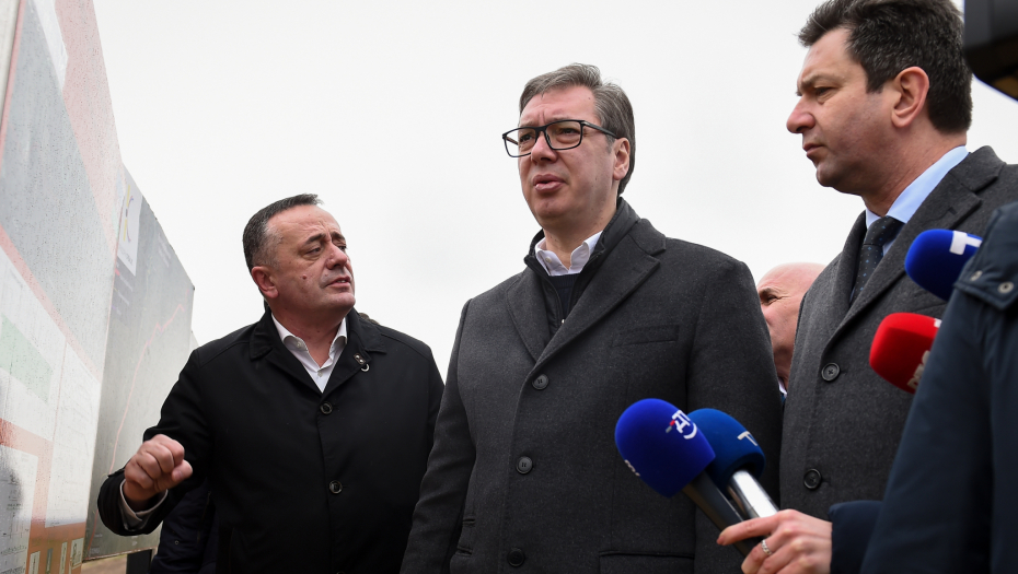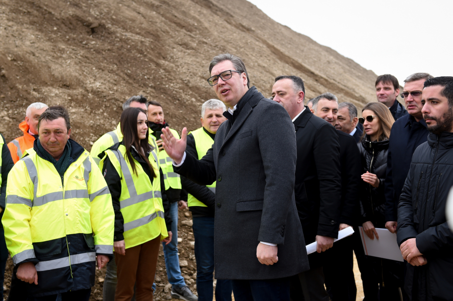 Predsednik razgovara sa prisutnima na terenu, radnicima, kao i izvođačima radova.