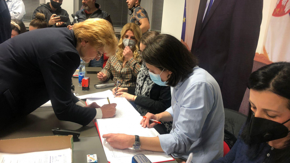 Potpisala je i prva na listi "Aleksandar Vučić - Zajedno možemo sve" Danica Grujičić.