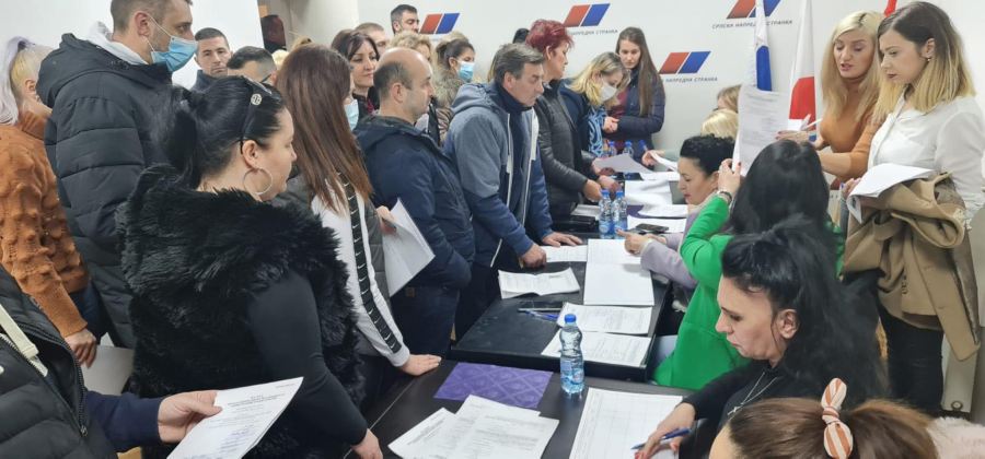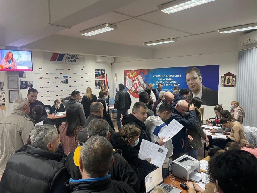 Večeras se oko 20 časova veliki broj građana Srbije okupio na Novom Beogradu kako bi dali svoju podršku i potpis listi SNS za predstojeće izbore.