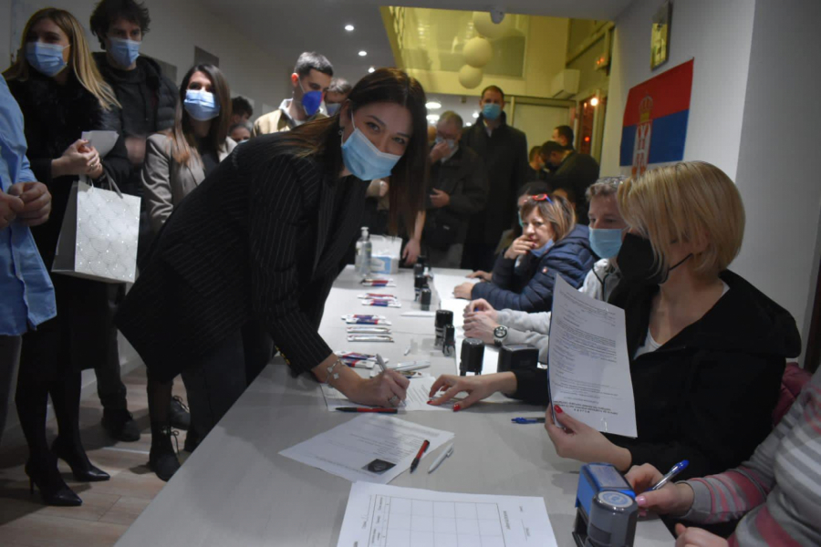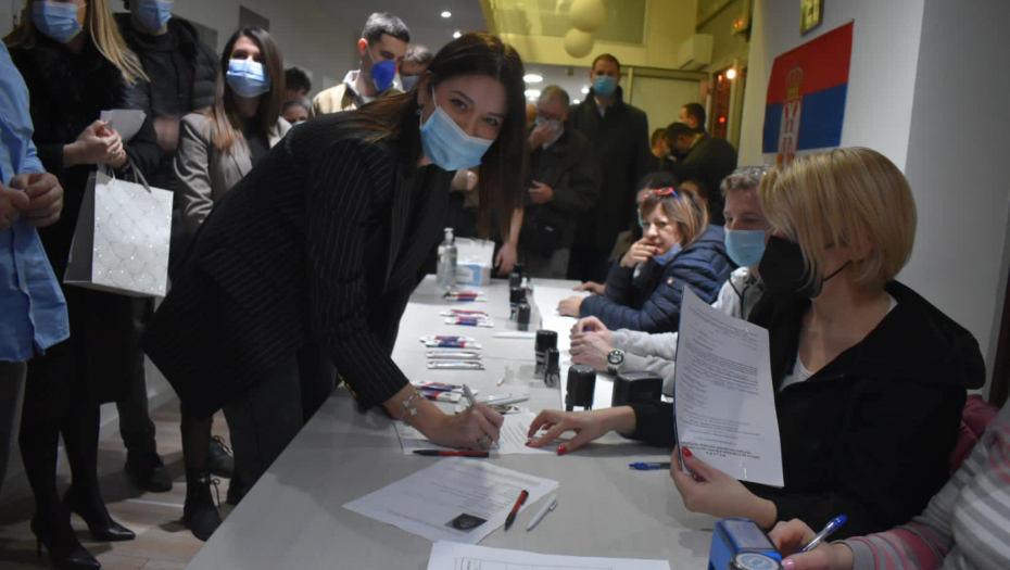 Svoj potpis su, u Džona Kenedija 18, dati i Aleksandar Šapić prvi na listi "Aleksandar Vučić - Zajedno možemo sve" za beogradske izbore kao i doktorka Marija Zdravković.