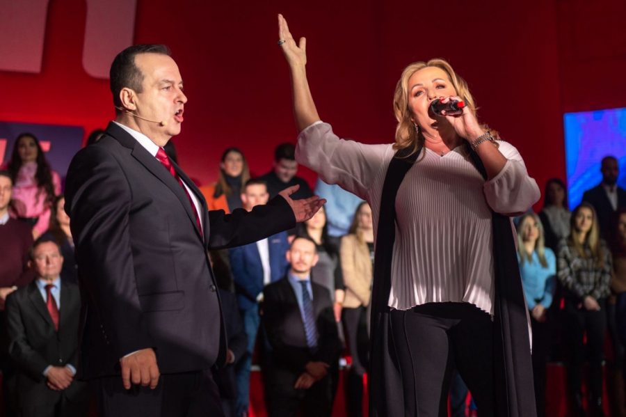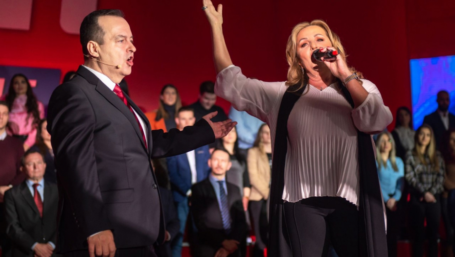 Dačić je podsetio i na pokojnog prijatelja, funkcionera SPS Milutina Mrkonjića, a zatim pozvao pevačicu Anu Bekutu da mu se pridruži.