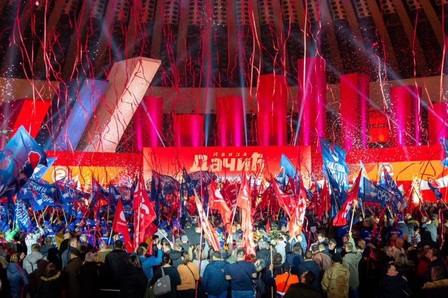 Dačić je poručio da na predsedničkim izborima podržava Aleksandra Vučiće, te objasnio da će, ukoliko oni budu premijer i predsenik, Srbija imati čvrstu, naprednu i odgovornu politiku. Podižući zastavu Srbije, poručio je da se za to bori.