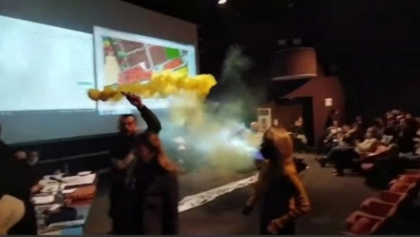 Da podsetimo, današnja sednica je morala da se prekine zbog brutalne političke manjine ekstremno levičarskih organizacija, koji su bacali pirotehnička sredstva i konstatnim provokacijama pokušavali da izazovu incident.