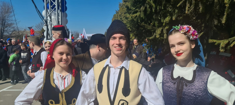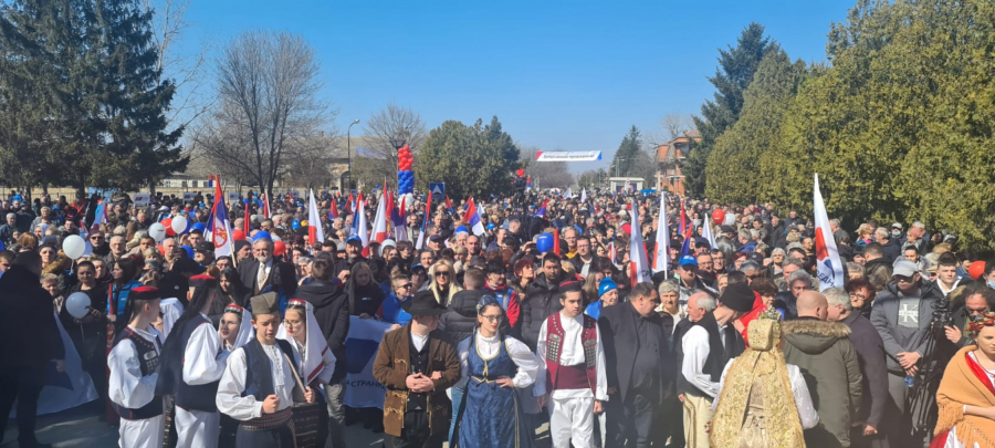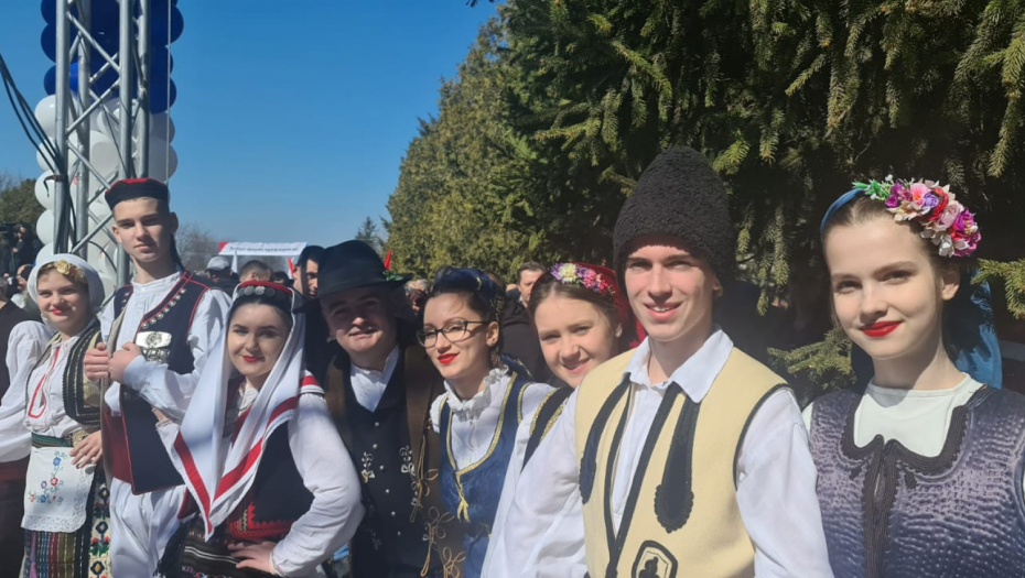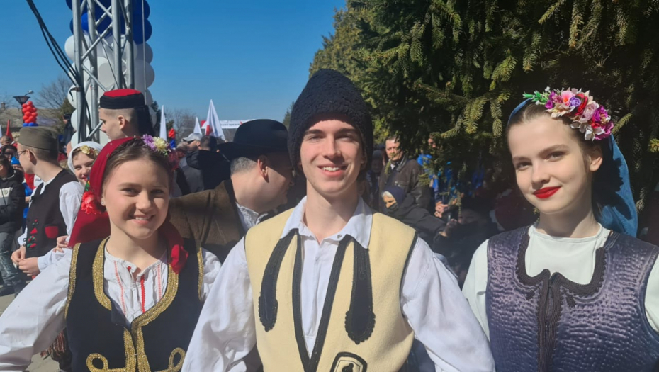U sjajnom raspoloženju građani su dočekali predsednika, obučeni u narodne nošnje i ogrnuti zastavama.
