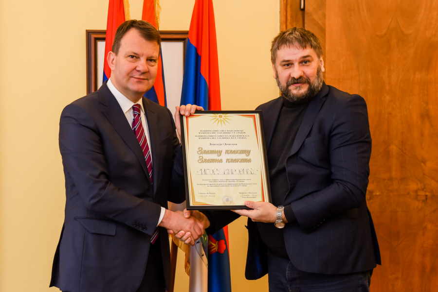Tom prilikom predsedniku Miroviću je uručena plaketa za doprinos radu i afirmaciji Nacionalnog saveta makedonske nacionalne manjine.