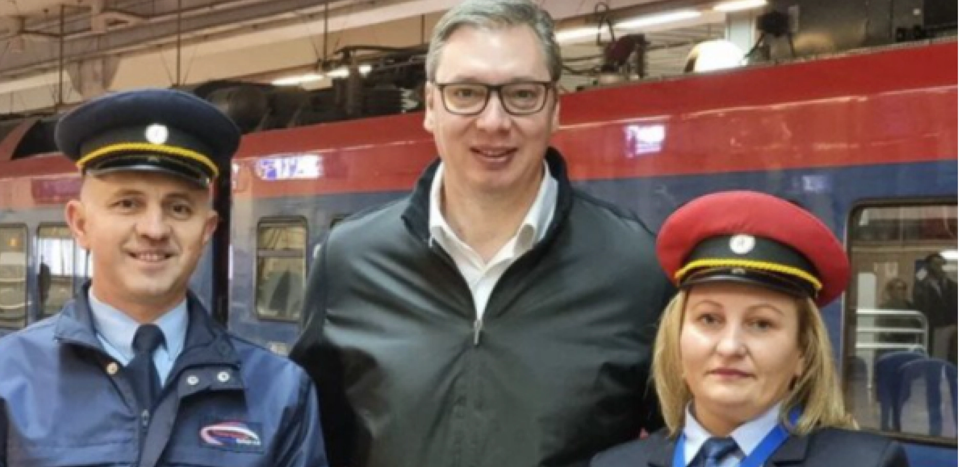 Predsednik se, nakon što je stigao na stanicu Prokop u Beogradu, slikao i razgovarao sa mašinovoljom i kondukterkom.