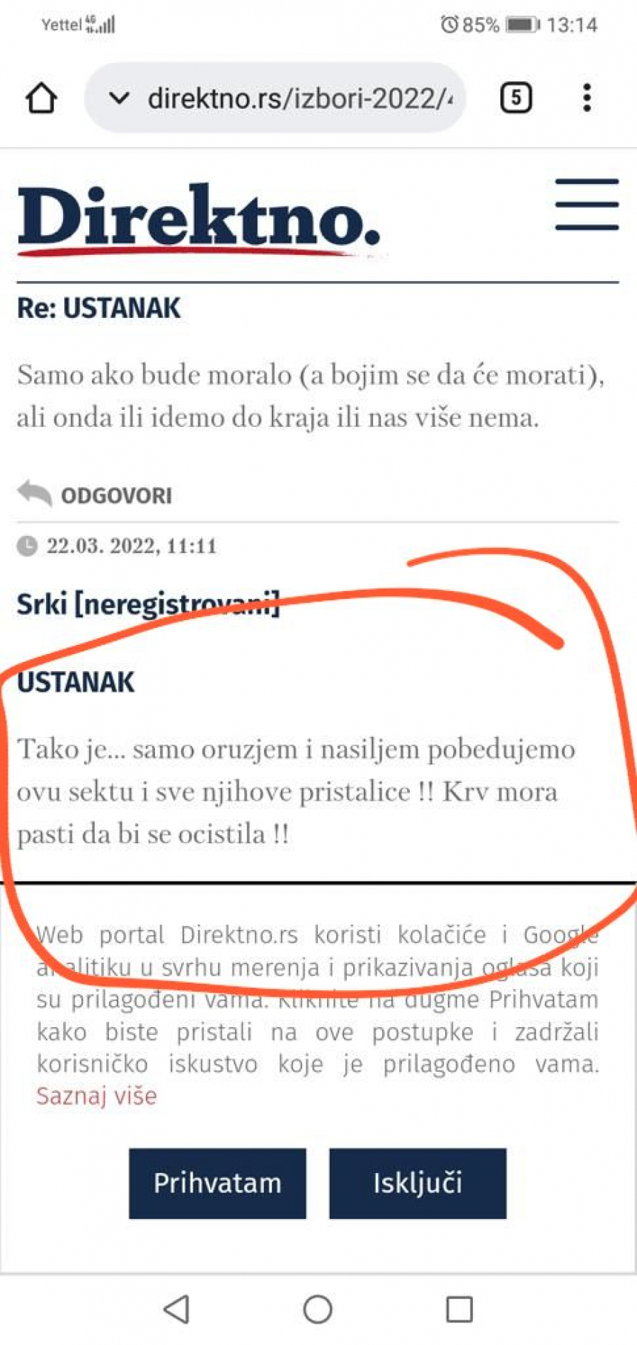Podsećamo, javni pozivi na nasilje su zakonom zabranjeni i đilasovski tabloid dužan je da ovakve komentare ukloni.