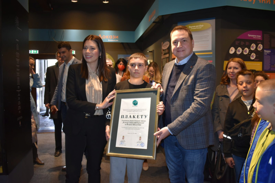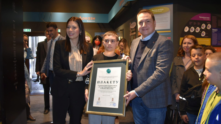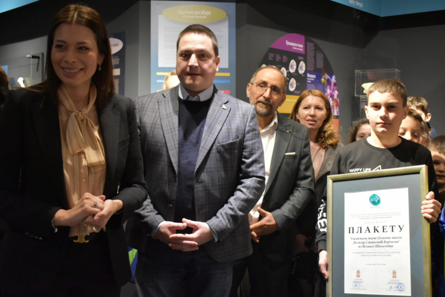 Ministarka zaštite životne sredine Irena Vujović danas je u Prirodnjačkom muzeju u Beogradu, zajedno sa prvim potpredsednikom Vlade i ministrom prosvete, nauke i tehnološkog razvoja Brankom Ružićem dodelila plaketu timu Osnovne škole ,,Velizar Stanković Korčagin“ iz Velikog Šiljegovca, koji je na takmičenju učeničkih projekata iz oblasti ekologije, po odluci žirija, osvojio prvo mesto.