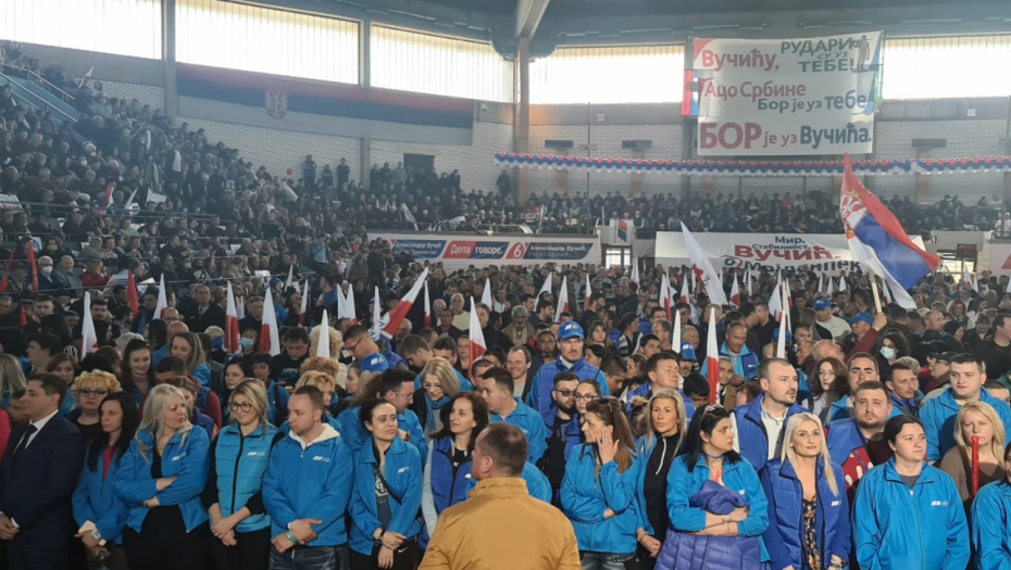 Napomenuo je da ljudima u Boru ima da obeća tri stvari. Prva je bolnica u Boru, druga je izgradnja puta, a treća stvar je da će u Krivelju da razgovara sa ljudima kako bi se rešio svaki problem.