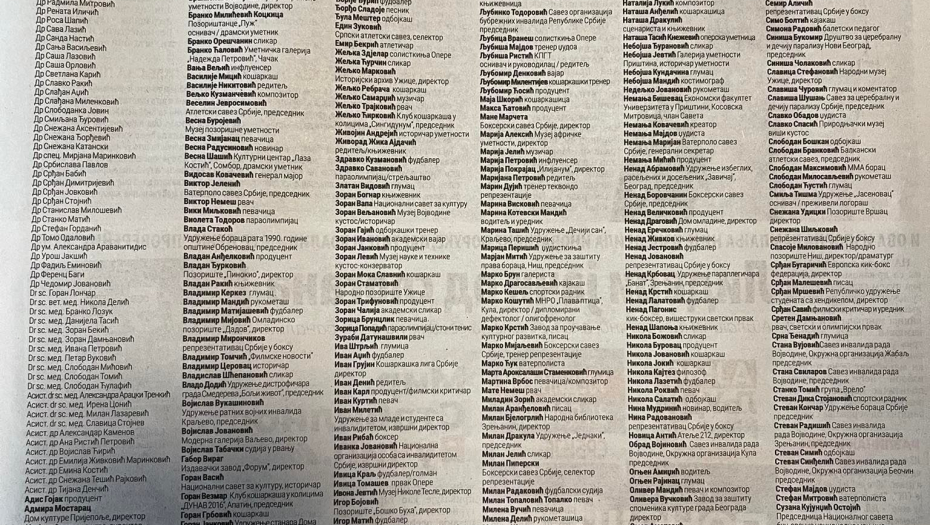 Među potpisnicima su profesori, pisci, reditelji, umetnici, sportisti i drugi