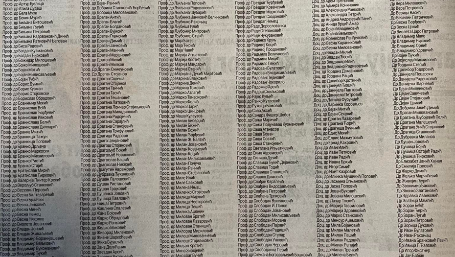 Na listi koju su danas objavili beogradski dnevni listovi, nalaze se akademici Vladimir Kanjuh, Ljubiša Rakić, Bela Balint, Svetislav Božić i Jovan Hadži Ðokić.