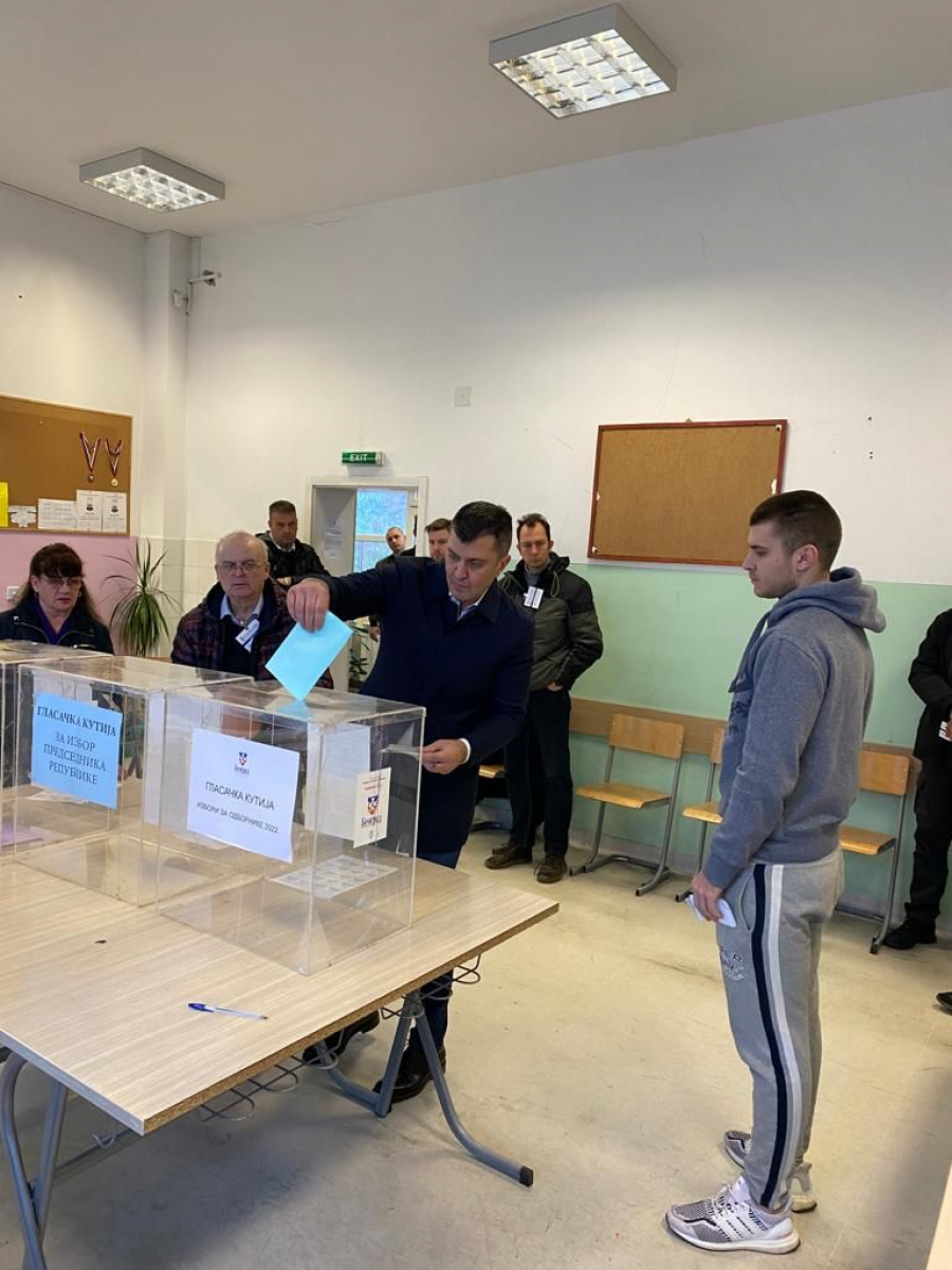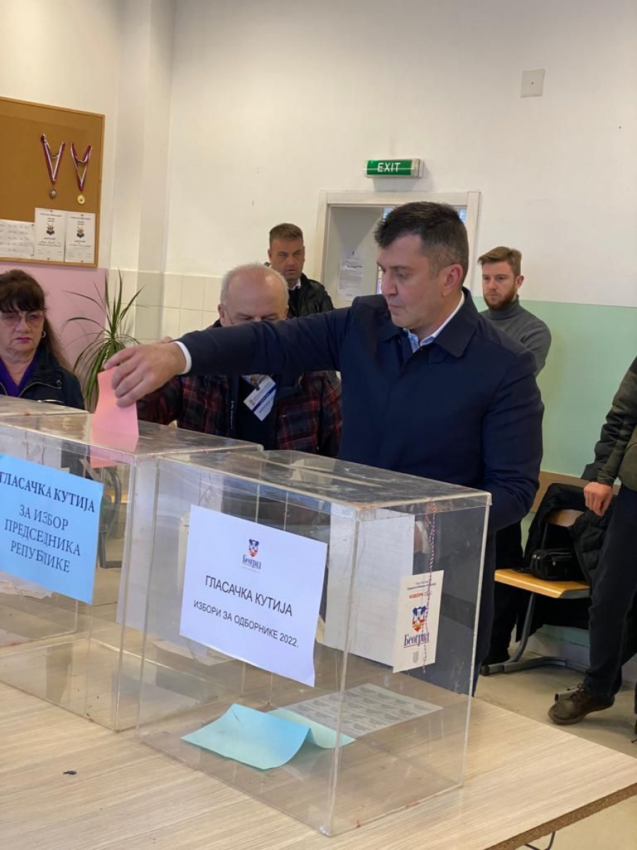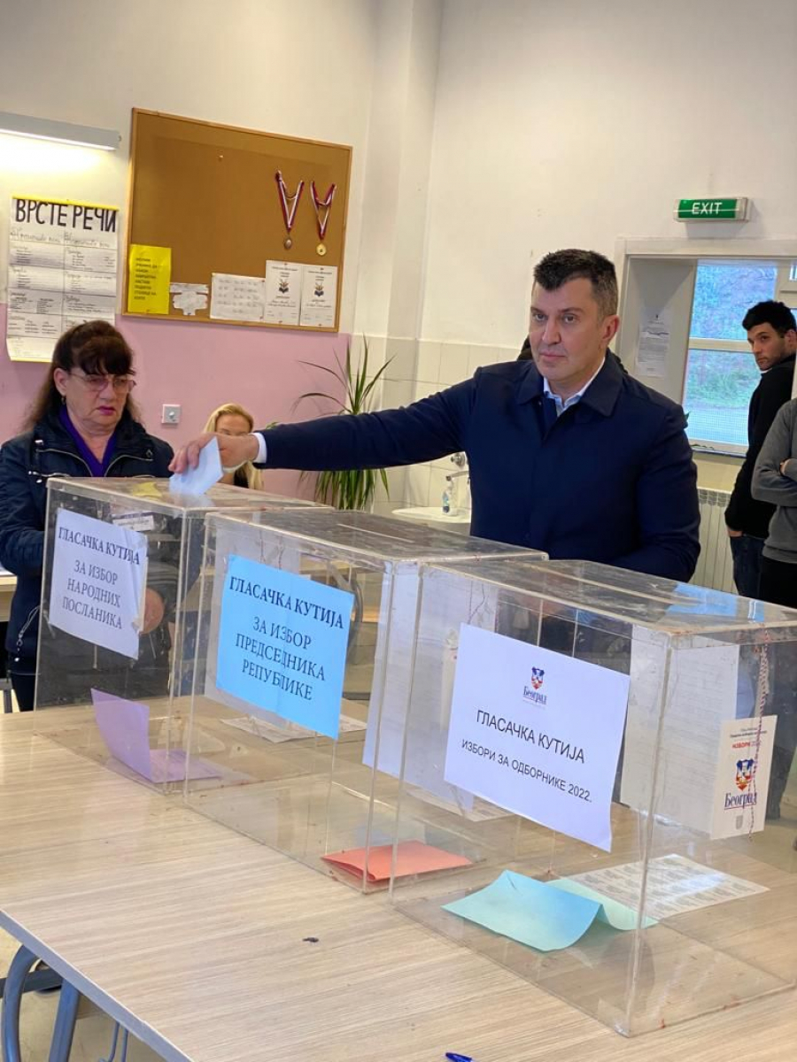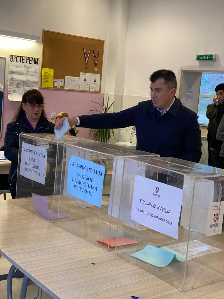 Ministar je ubacivanjem kontrolnih listova tačno u 7:00 otvorio biračko mesto Mali Mokri Lug - Zvezdara, a zatim je izvršio svoju građansku dužnost.
